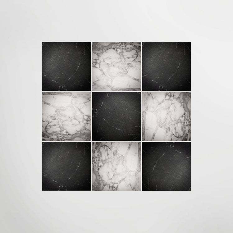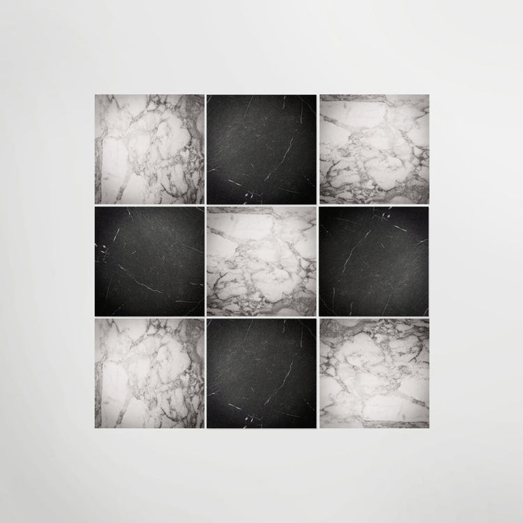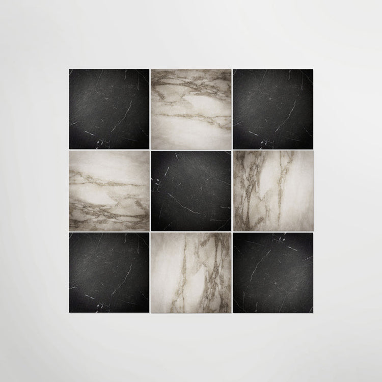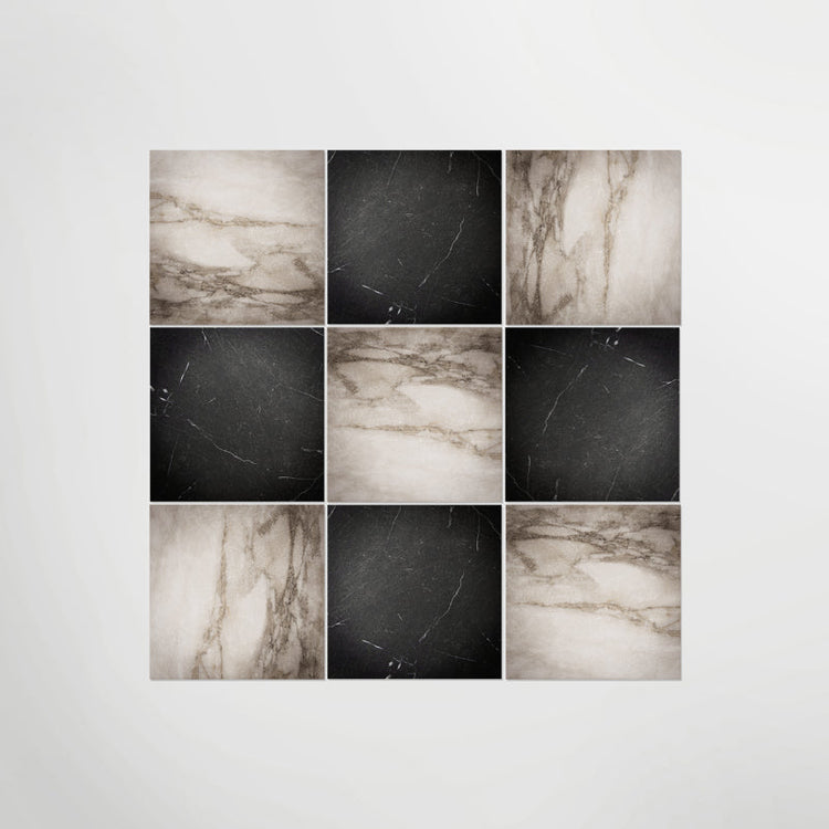 Antique Marble Arabescato and Nero Marquina Chequer - Marble Effect Porcleain