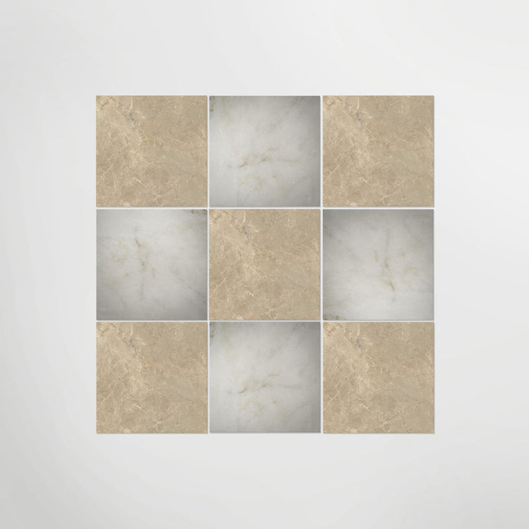Antique Marble Calacatta Oro and Cosmo Taupe Chequer- Marble Effect Porcelain