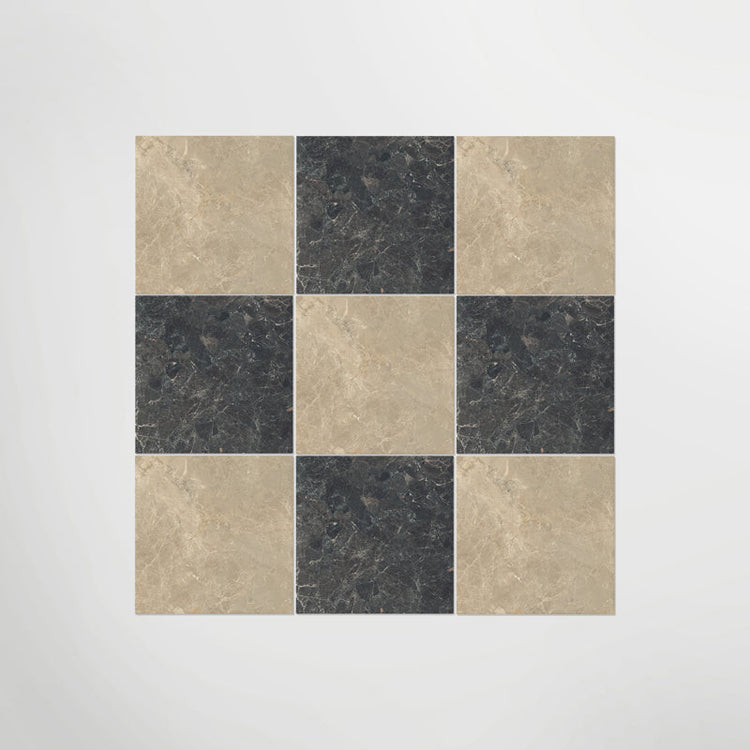 Cosmo Nero and Taupe Chequer - Marble Effect Porcelain
