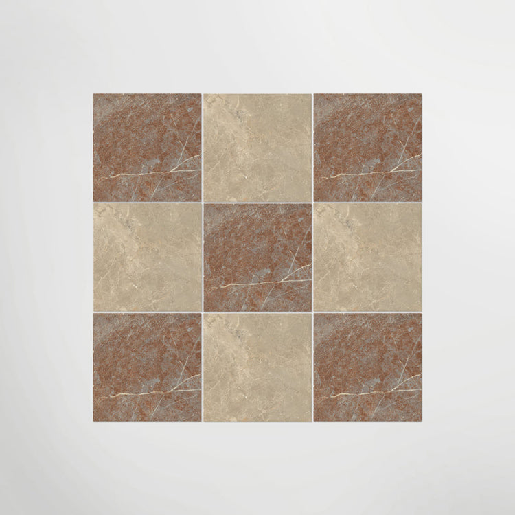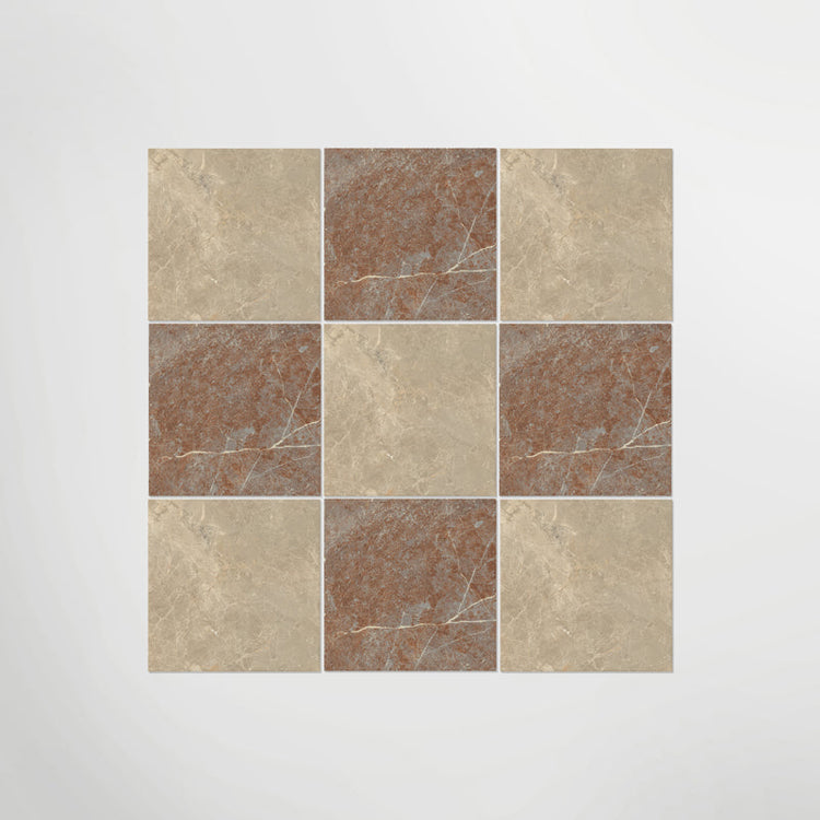 Cosmo Taupe and Rosso Chequer - Marble Effect Porcelain