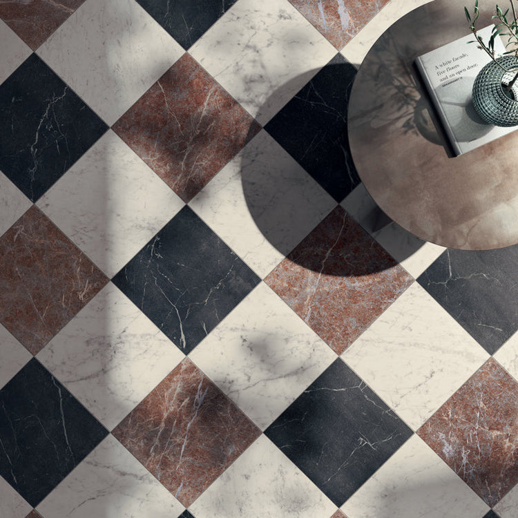 Cosmo Nero and Rosso Chequer - Marble Effect Porcelain