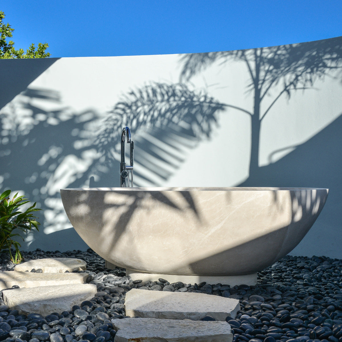 Lapicida’s exceptional quality control procedures secured the commission to provide natural stone surfaces for this private residence in the Caribbean. A beautiful cream marble from Lapicida features throughout, adorning the walls and floors and even the cobbled roads. The custom-made baths and vanities are crafted from the same marble, as are the surrounds of the elegant swimming pool and floating dining pavilion.