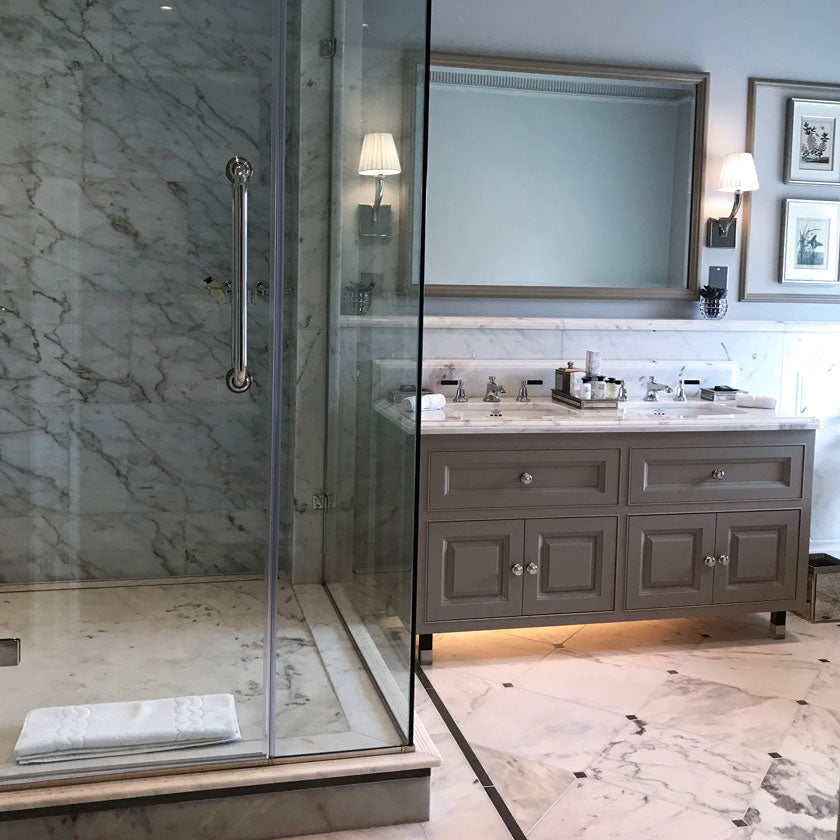 Embracing advance in technology, our range of porcelain and ceramic surfaces offers boundless variation in colour, tone and detail. Elegant San Marino marble adorns the hotel’s 47 en-suite bathrooms. A range of approaches from geometric stone floors, etched panels and intricately cut vanity tops and shower bases are present throughout the space.