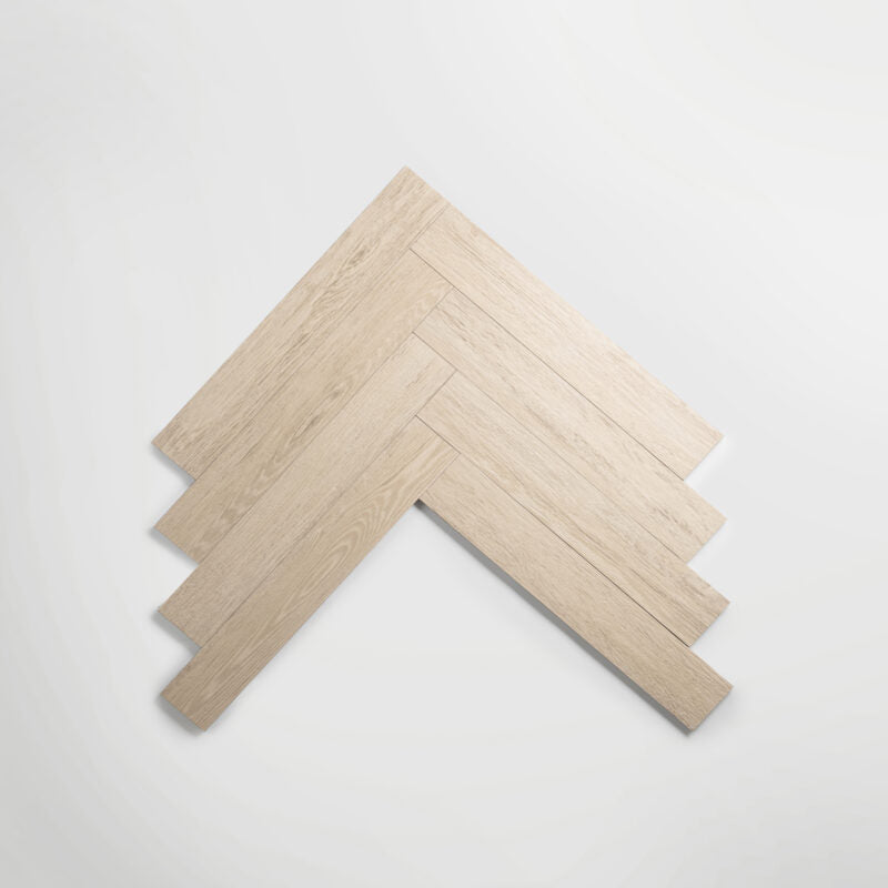 A parquet herringbone wood floor is a thing of natural beauty. Our on-trend Porcelain Wood Collection has all the same qualities, yet is also eminently more practical with virtually zero upkeep. The look and authenticity of natural wood, with all its nuances, grain and knots, but in a waterproof, durable and format.