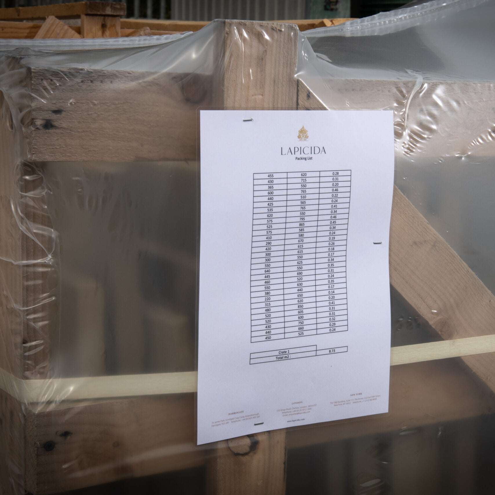 Before it made its journey across the Atlantic it had been sourced by Lapicida then expertly recalibrated into a more regular thickness of around 30mm for ease of installation before being carefully colour selected to the client’s specific requirements.